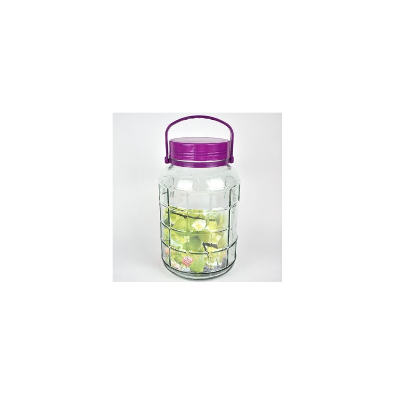 Frasco de vidrio con tapa de rosca, asa para mejor manejo del producto. Capacidad de 5 litros.