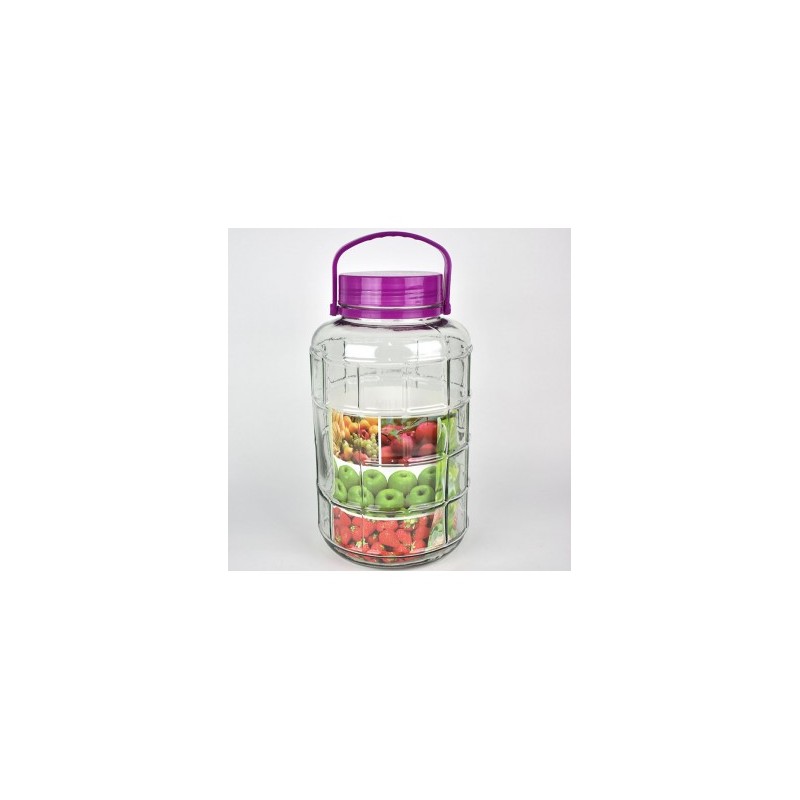 Frasco de vidrio con tapa de rosca, asa para mayor facilidad de manejo. Capacidad de 8 litros.