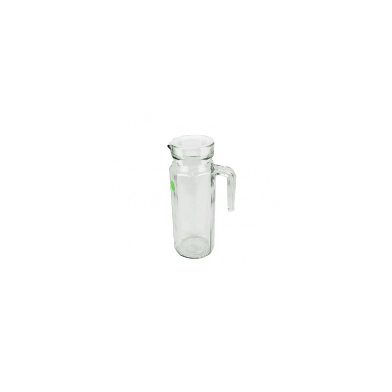 Jarra de cristal con capacidad de 1.5 litros. Tapadera de plástico.
