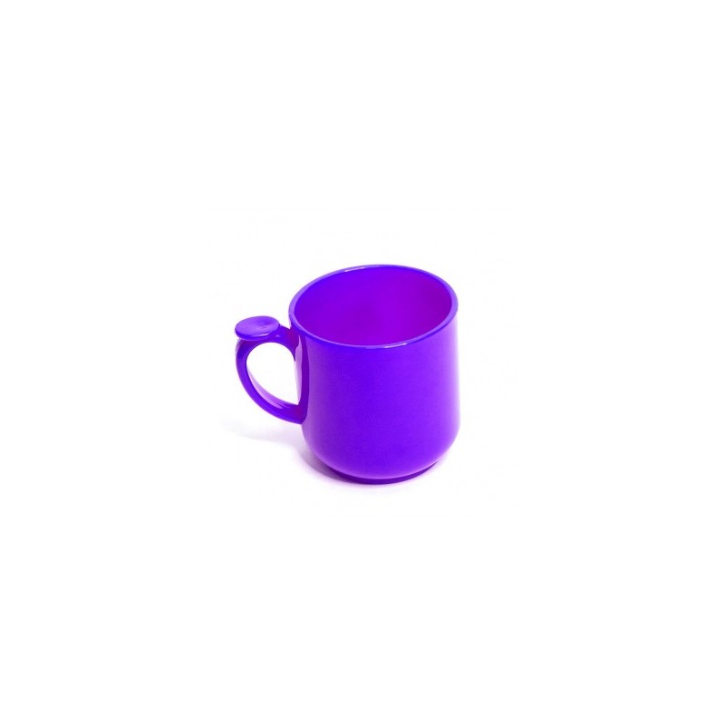 Taza de plástico ergonómica color rosa de 9 cm de diámetro.